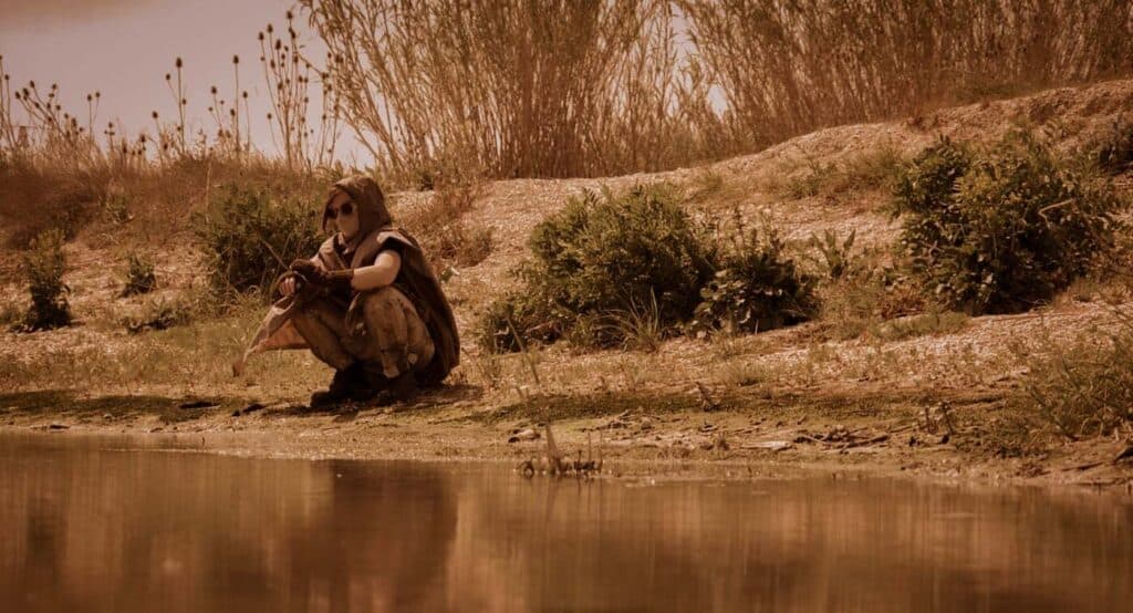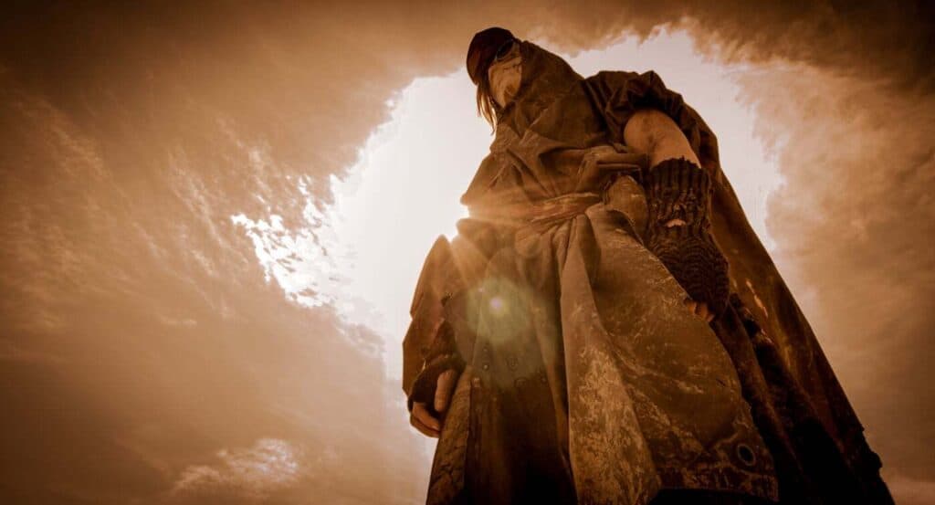 Uh, grazie. Tutte le scelte del video sono della band. E’ andata così: “Ciao Michele, vorremmo un videoclip a metà tra Dune e Mad Max e abbiamo diciottomilalire”. “Ah, ok, facciamolo!”. Loro avevano le idee chiarissime, scena per scena, giro sonoro per giro, io ho solo cercato di materializzare quello che avevano chiaro in testa e poi ho lavorato agli fx, al montaggio e tutta la post. A farlo funzionare sono anche la location (la raffineria di Falconara) e il fatto che non abbiamo usato effetti digitali per creare il doppio della protagonista ma due vere sorelle gemelle identiche. Quindi, no, le scelte narrative, estetiche e stilistiche di tutto sono merito loro, io ho solo lavorato a tutta la produzione, dalla regia alla post. Hanno detto che è un brano che sonda le insidie papabili dell’intelligenza artificiale. Da qui il gioco grafico testuale del titolo.